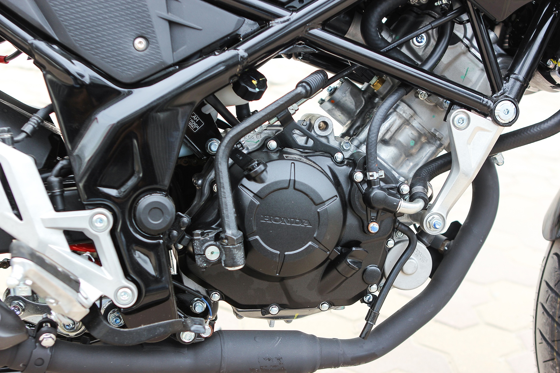 , xi-lanh đơn, dung tích 149,8 cc, SOHC, 4 van, cho công suất 16,09 mã lực tại 8.500 vòng/phút và mô-men xoắn cực đại 14,3 Nm tại 7.500 vòng/phút, đi cùng hộp số 6 cấp. Trong khi đó, CB150R dùng động cơ 150 phân khối DOHC, 4 van, làm mát bằng chất lỏng, công suất tối đa 16,9 mã lực tại 9.000 vòng/phút, mô-men xoắn cực đại 13,8 Nm tại 7.000 vòng/phút, hộp số 6 cấp. Cả 2 xe đều tích hợp hệ thống phun xăng điện tử, làm mát bằng dung dịch. |