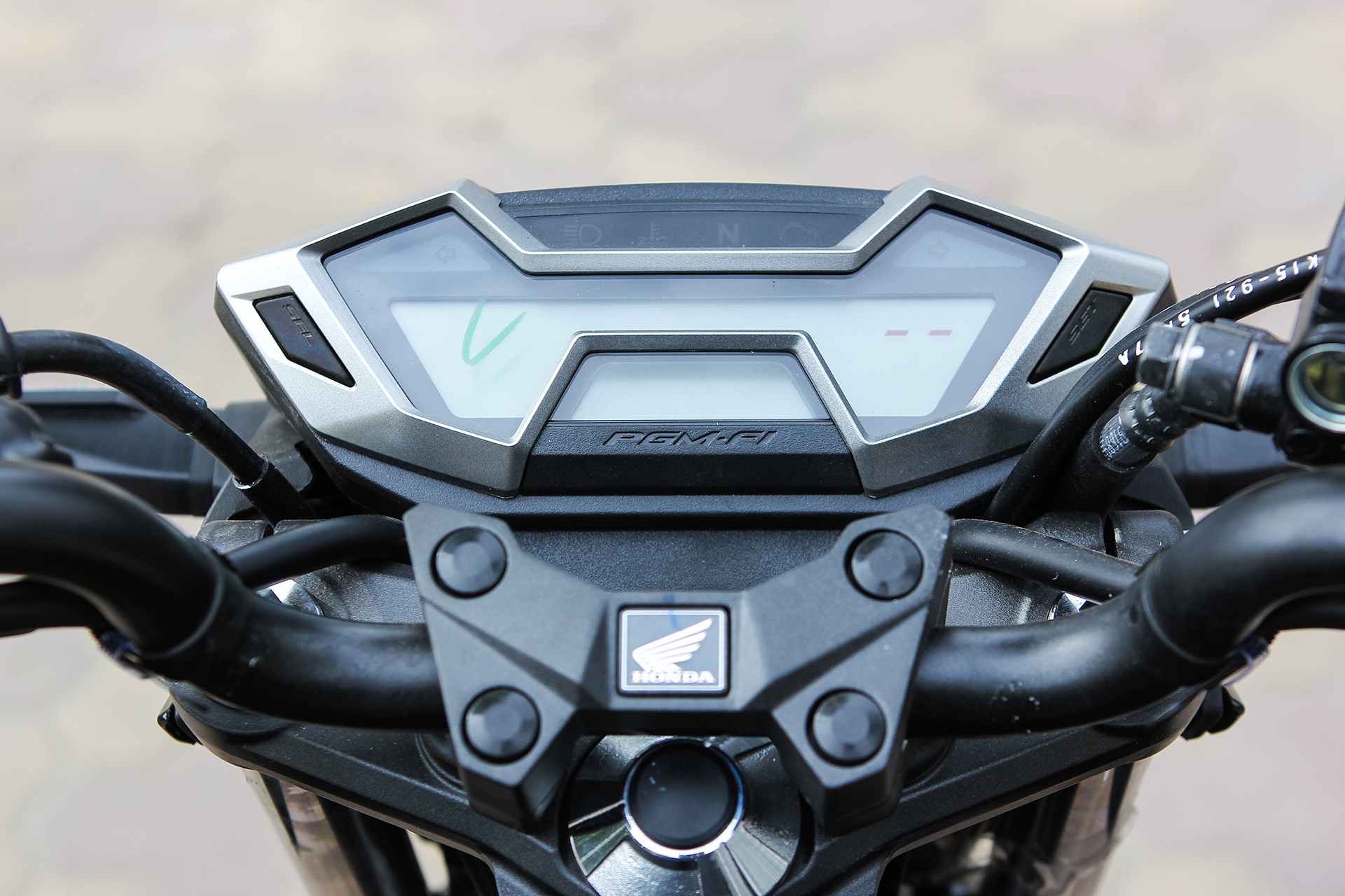 | Hai naked bike 150 phân khối này đều sử dụng đồng hồ hiển thị dạng điện tử. Tuy nhiên, thiết kế trên mặt đồng hồ của CB150R có phần rườm rà hơn so với đối thủ. |