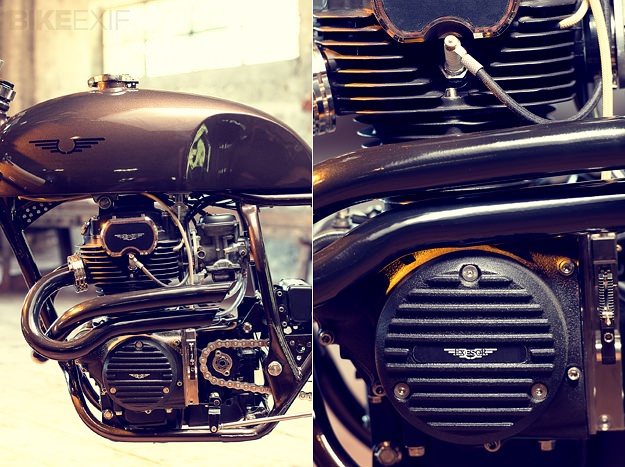 | Chiếc Honda CB250 Café Racer độ màu cà phê là "con đẻ" của ông Christian Schwarzenlander đến từ hãng ExesoR Motorcycles. Được biết, ông Schwarzenlander đã mất hơn 2 năm mới hoàn thành chiếc Honda độ đặc biệt, theo đơn đặt hàng của một hãng cà phê. Schwarzenlander là một kỹ sư quản lý chất lượng đến từ Úc. Ông đã dành nhiều tâm huyết cho chiếc Honda CB250 Café Racer độ màu cà phê đặc biệt. Có thể thấy rõ điều đó qua từng chi tiết trên chiếc xe. |