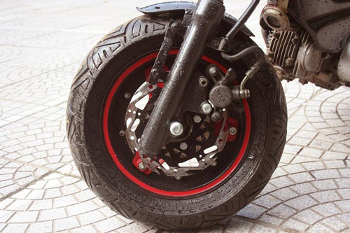 | Bánh trước trang bị phanh đĩa độc đáo, sử dụng phuộc trước của xe LEAD. |
