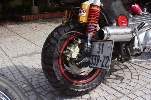 | Phuộc sau độ đáo, sử dụng lốp to bản. |