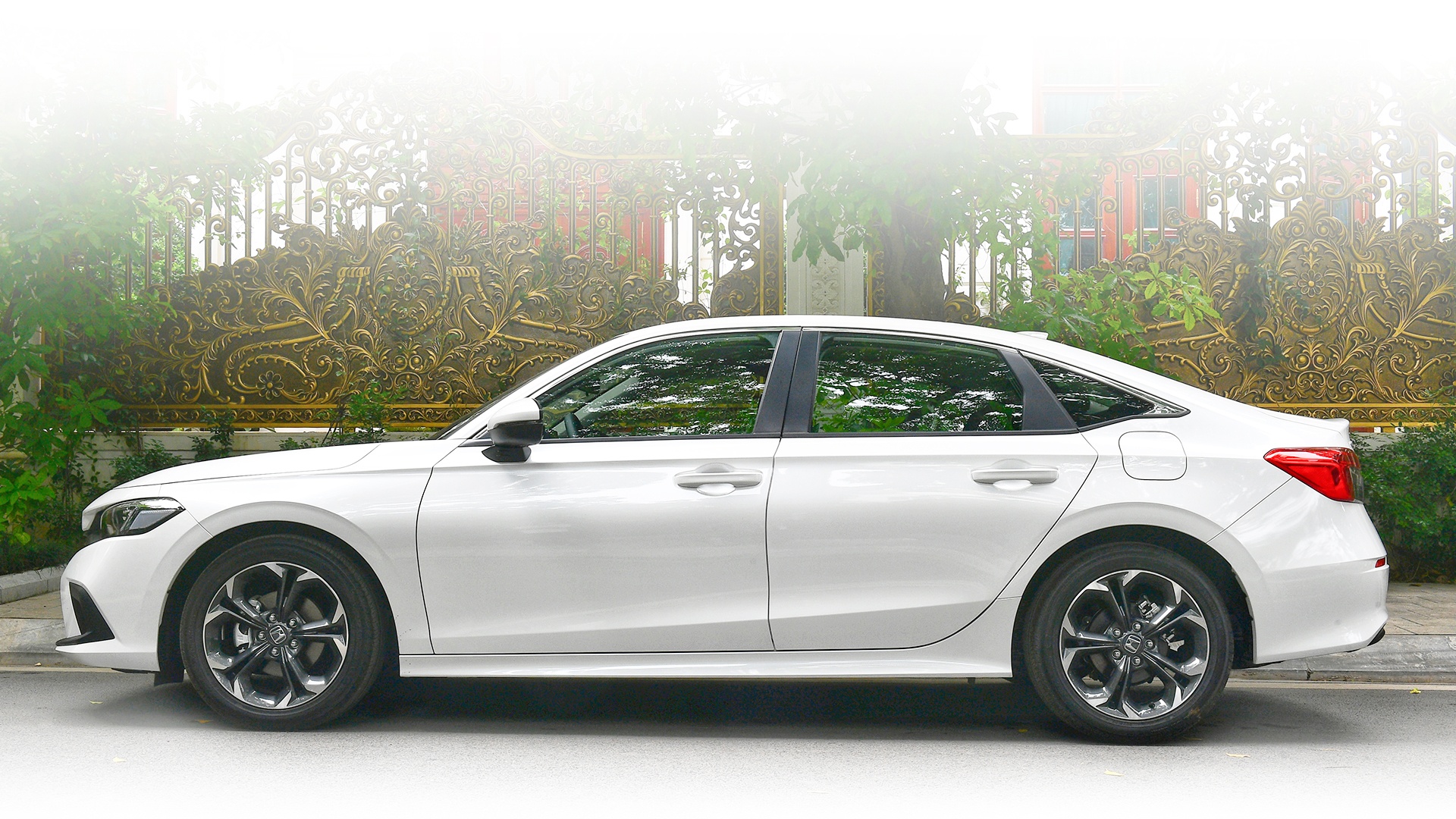 Nhìn từ bên hông, Honda Civic cho cảm giác thể thao với thiết kế phía đuôi vuốt xuống theo phong cách fastback. Civic G được trang bị gương chiếu hậu gập điện tự động và tích hợp đèn báo rẽ, phần tay nắm cửa và ốp gương sơn cùng màu thân xe mang đến cái nhìn hòa hợp và lịch lãm.