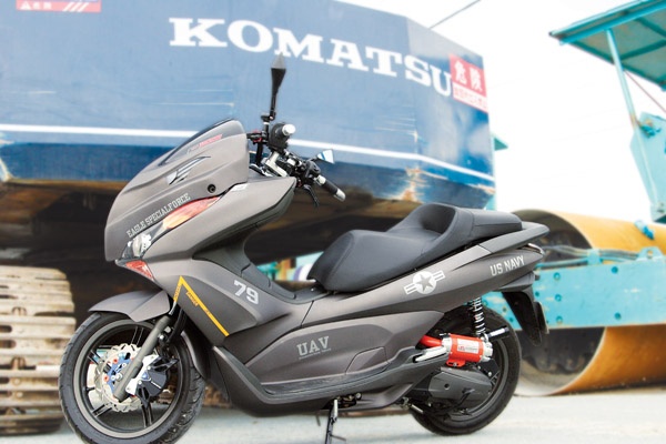 | Honda PCX 125 phủ sơn màu ghi nhám phong cách US Navy rất cá tính. |
