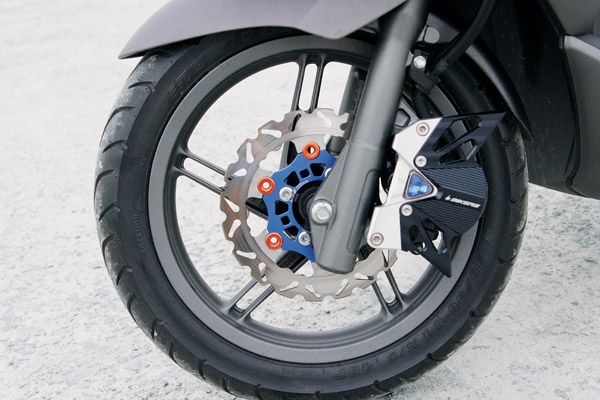 Điểm nhấn của chiếc xe là pô air đầy ấn tượng màu cam hiệu Showa của Nhật cùng cặp phuộc nhún hiệu Combiz có ống dầu trợ lực tạo dáng khỏe khoắn, cứng cáp cho dàn đuôi xe. Yên xe cũng được chế lại tạo gờ nổi giữa 2 chỗ ngồi, tạo sự thoải mái cho người ngồi trước do có chỗ tựa lưng, đĩa phanh cũng được thay bằng đĩa bông và ốp cùm phanh tạo dáng hầm hố, hiện đại cho xe.