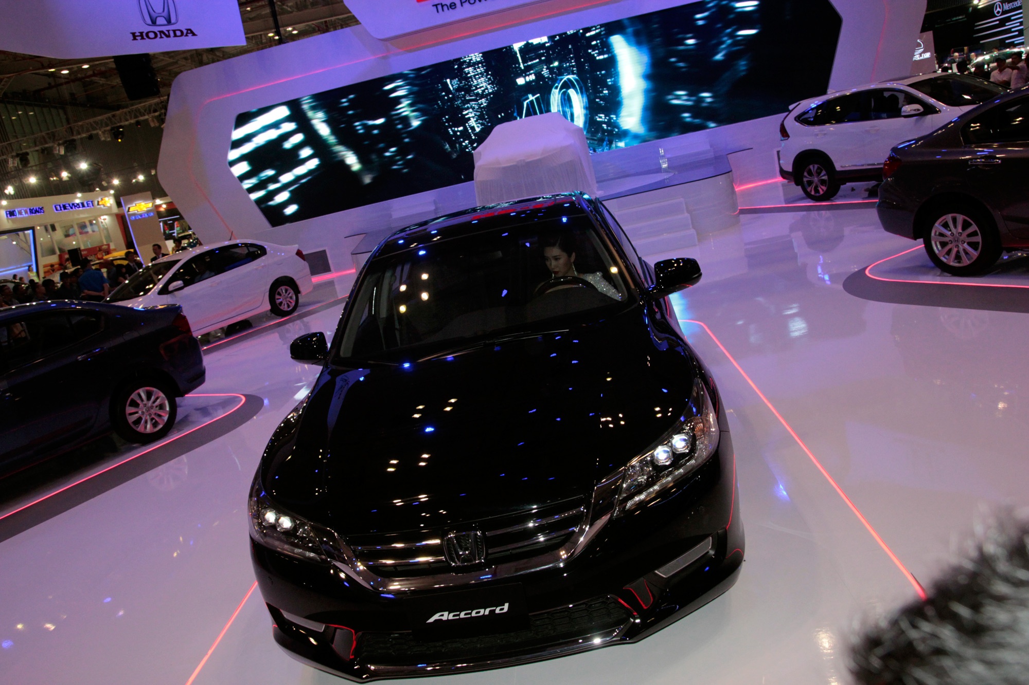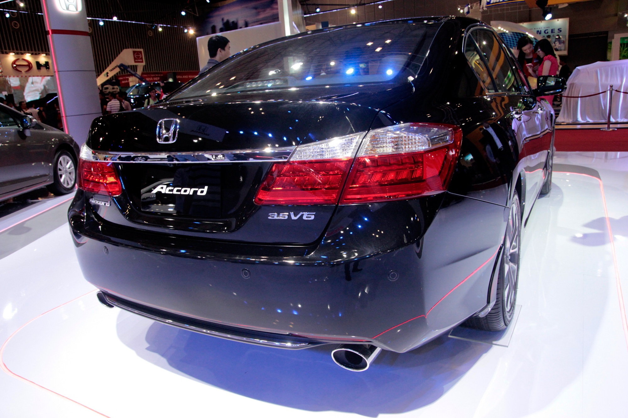 Honda Accord là mẫu sedan cạnh tranh với các mẫu Toyota Camry và Nissan Teana. Tại triển lãm năm nay, Honda Việt Nam mang đến chiếc Accord 2013 với động cơ V6 3,5 lít. Đây là mẫu Accord đầu tiên trang bị động cơ Earth Dream mới.