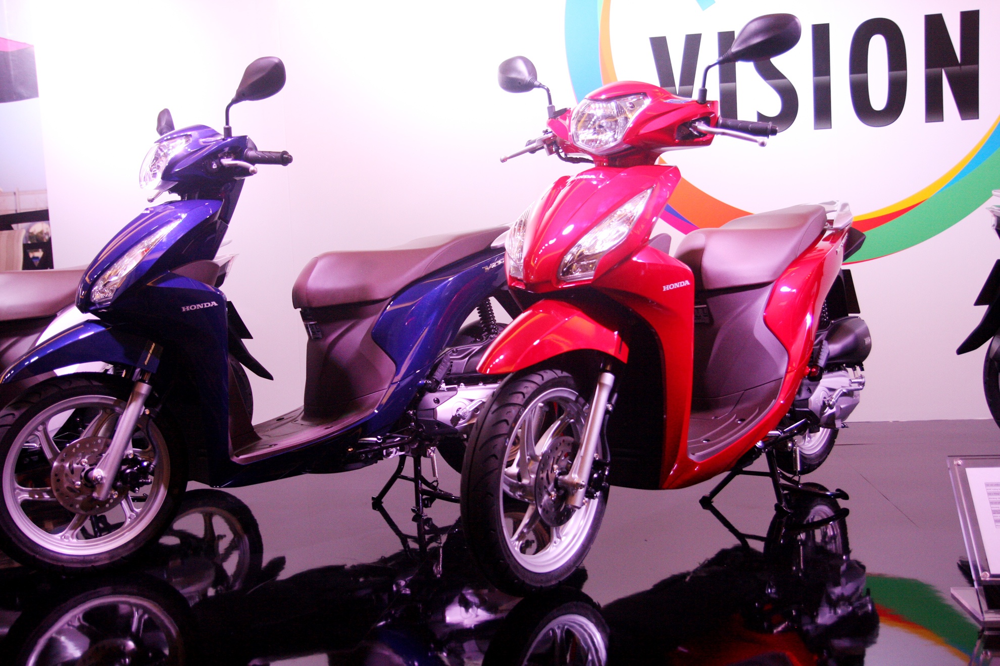 Honda Vision 110 mới có hai phiên bản gồm bản Thanh lịch với các màu đen, bạc, xám và bản Thời trang gồm các màu trắng, xanh, đỏ. Giá bán lẻ đề xuất 29,9 triệu đồng.