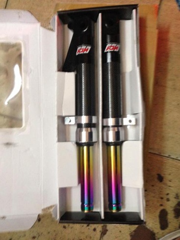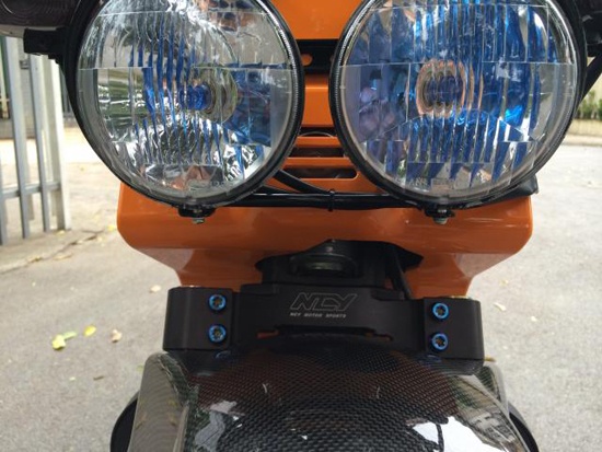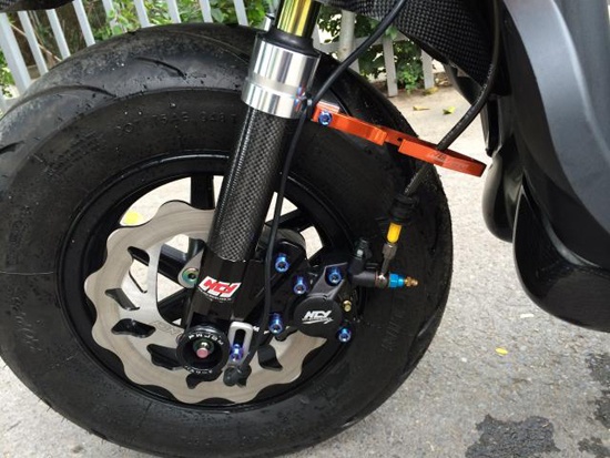 | Toàn bộ kit bánh trước của hãng NCY, gồm thụt, đĩa, phanh dầu, pát phanh, dây phanh. Công tắc đề của hãng WM. |
