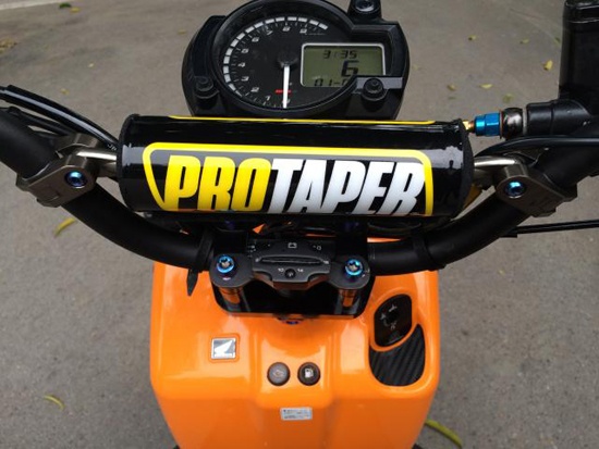 | Ghi đông thay mới bằng ghi đông Pro Tapper SE (đây là hãng nổi tiếng thế giới về ghi đông xe đạp), được cắt ngắn mỗi bên 5 cm rồi sơn tĩnh điện. |