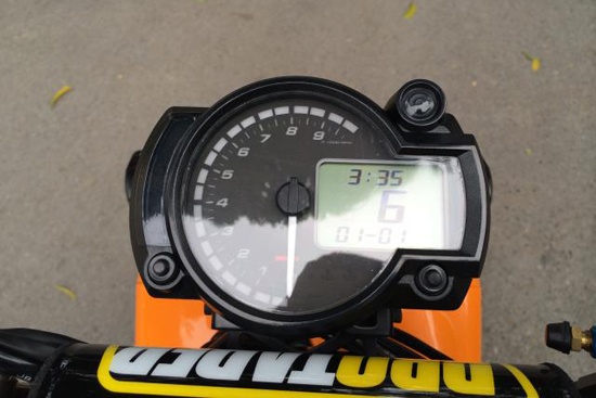 | Đồng hồ cơ được thay bằng đồng hồ điện tử Koso RX2N (hàng North America). |