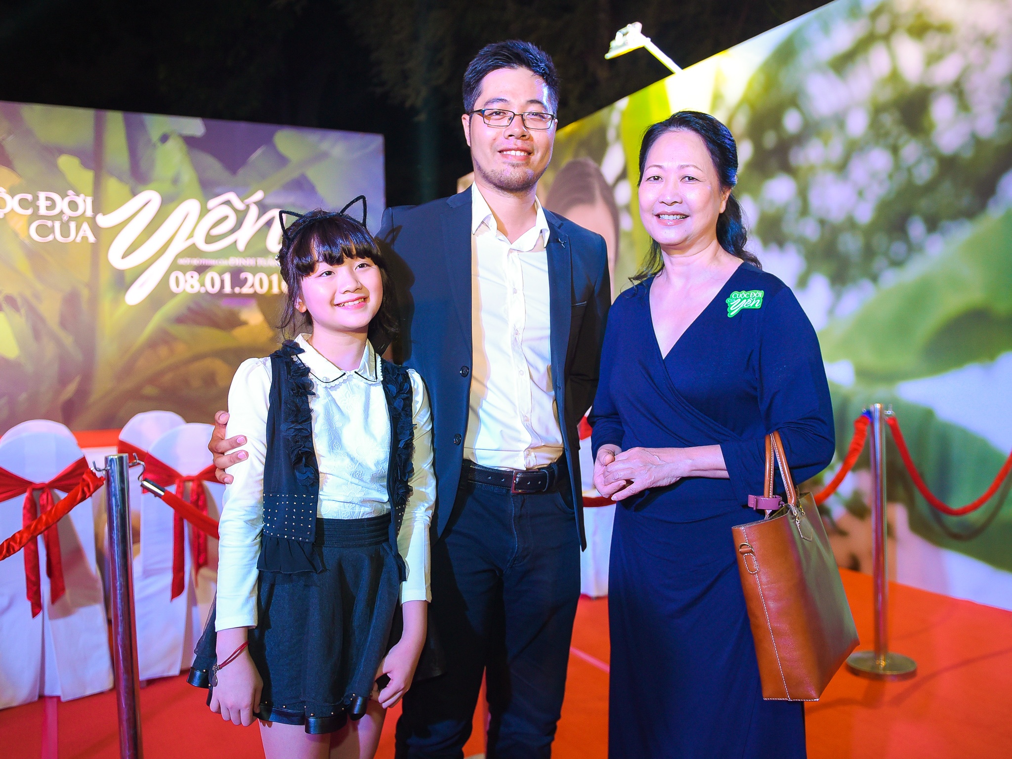 NSƯT Như Quỳnh đáp chuyến bay vào TP HCM ủng hộ đoàn phim. Chị chụp ảnh cùng đạo diễn và diễn viên nhí Kim Anh, người đóng vai Yến lúc nhỏ. |