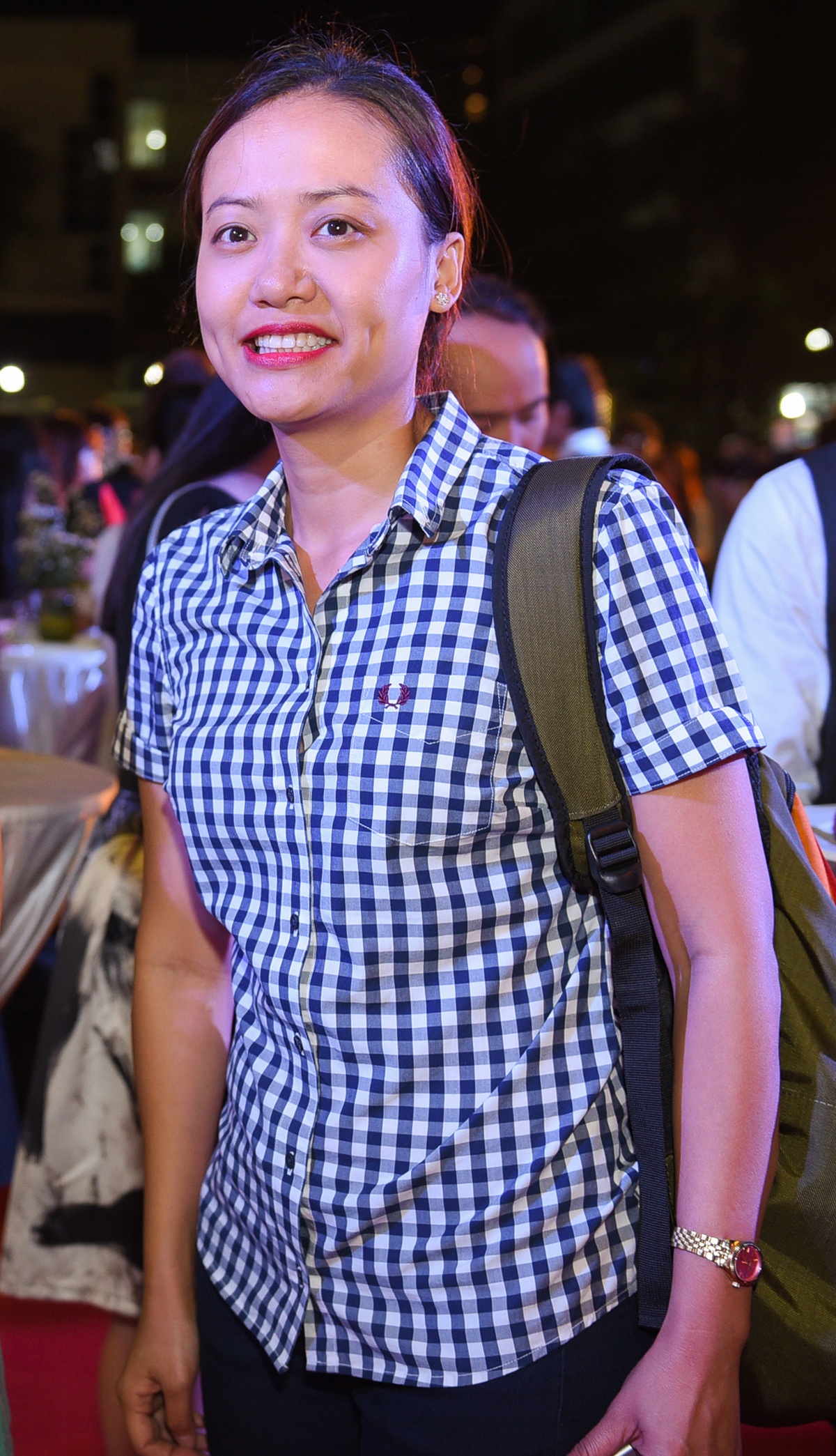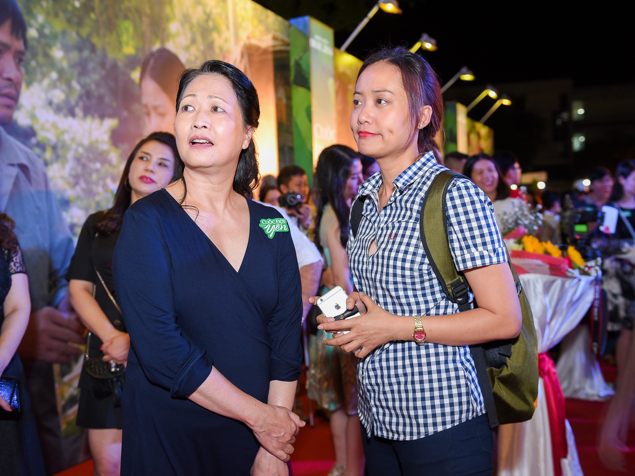 Hồng Ánh đến trò chuyện và chụp ảnh cùng đạo diễn Đinh Tuấn Vũ. Thời gian này, nữ diễn viên tài năng lui về hậu trường, hỗ trợ cho các nhà làm phim trẻ. Chị từng tham gia sản xuất Đường đua, được giới chuyên môn đánh giá cao nhưng doanh thu phòng vé không khả quan. Dù vậy, chị vẫn cùng chồng tiếp tục với công việc này. |