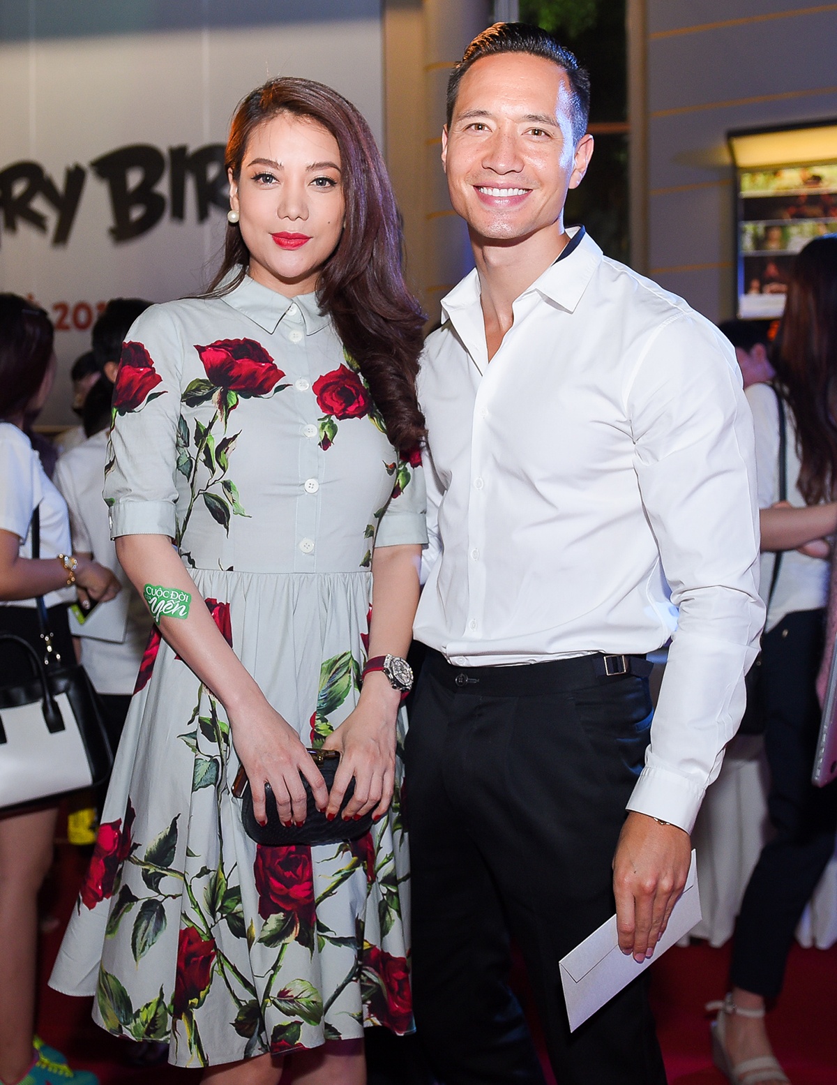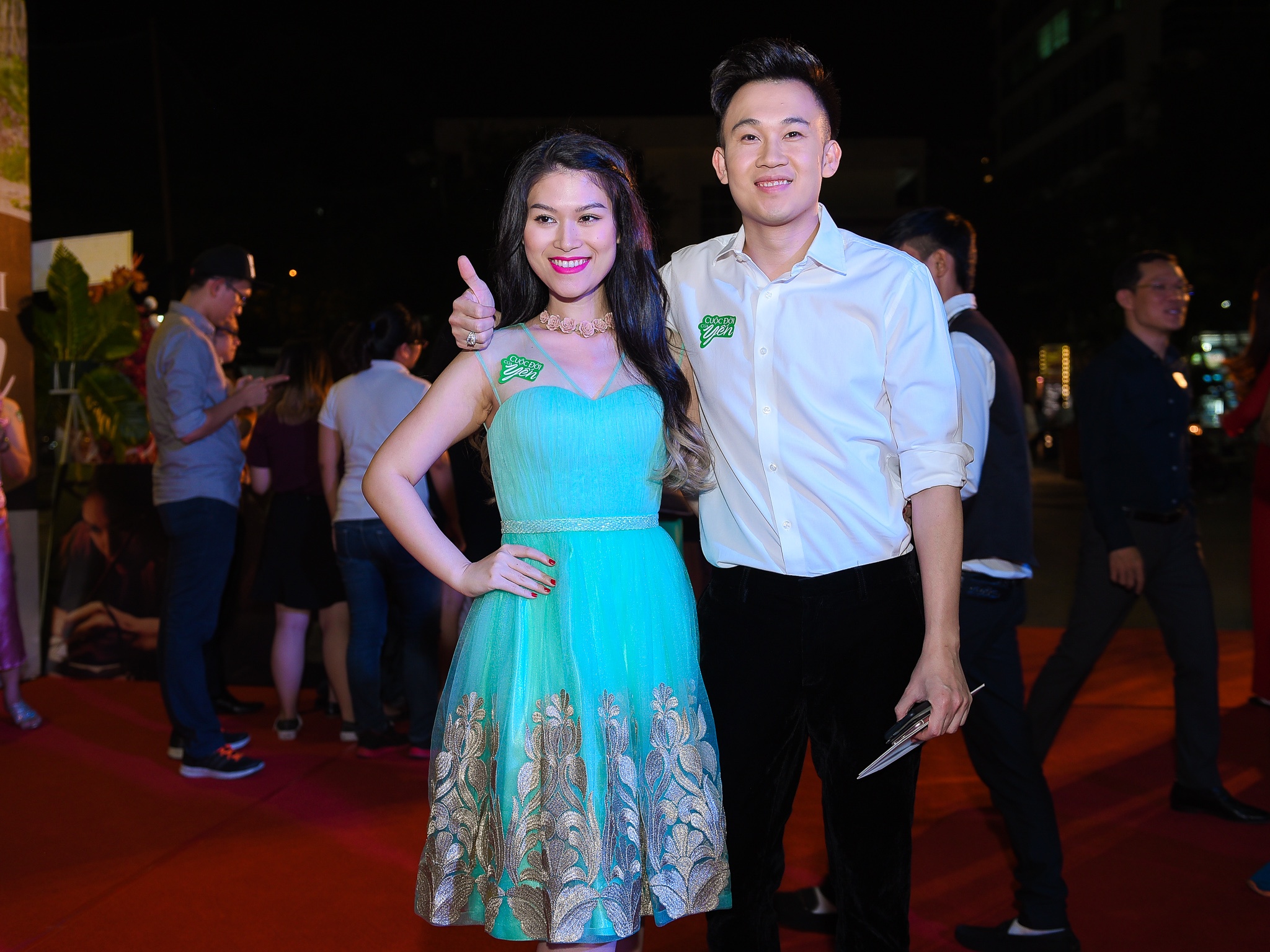 Vợ chồng Dustin Nguyễn - Bebe Phạm sánh bước trên thảm đỏ. Ở Liên hoan phim, nam diễn viên kiêm đạo diễn cũng nhận được giải bạc với Trúng số. |