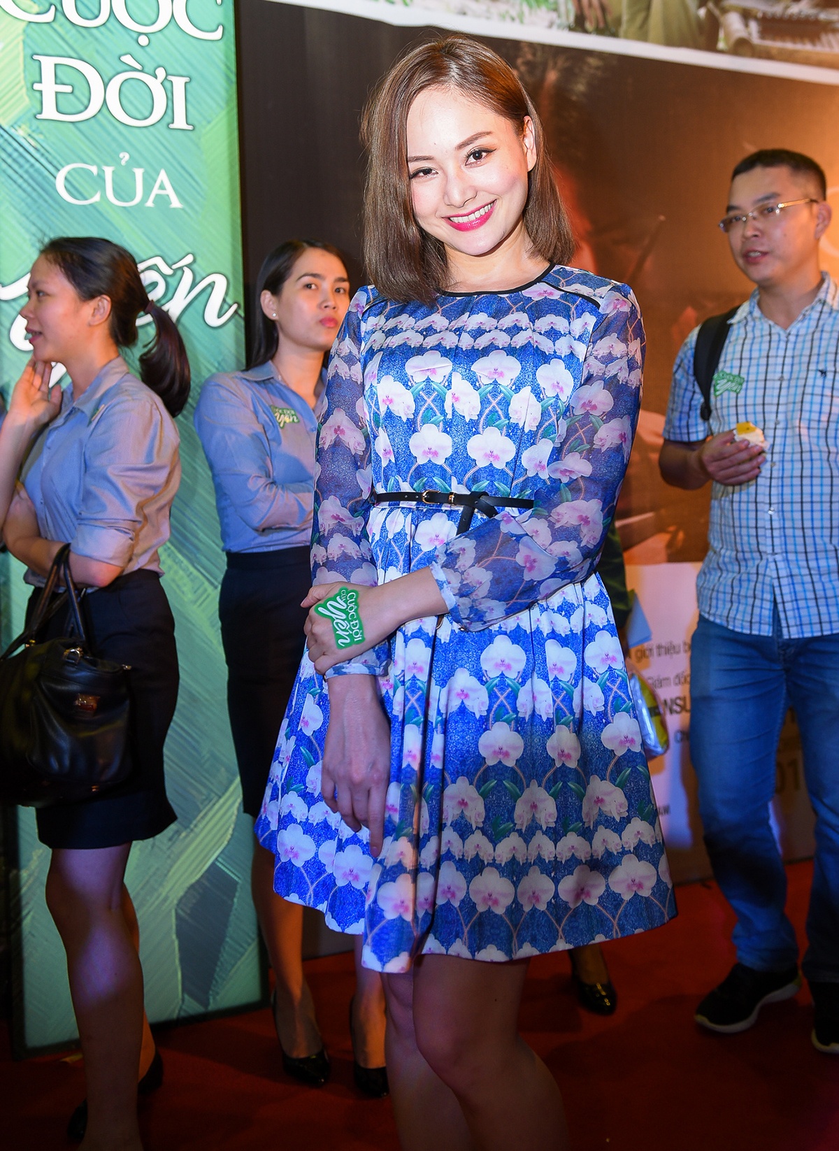 Nhiều nghệ sĩ ở TP HCM đến chúc mừng đoàn phim. Trong đó, nữ diễn viên Hồng Ánh xuất hiện với vẻ ngoài bình dị đến khó tin. Trang điểm nhẹ, ăn mặc đơn giản, chị như bao khán giả đang chờ đợi vào xem phim. |