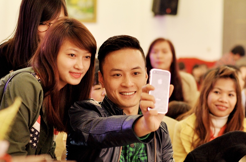 "Mỹ nam" Hồng Đăng được các fan nữ vây quanh để chụp ảnh cùng.