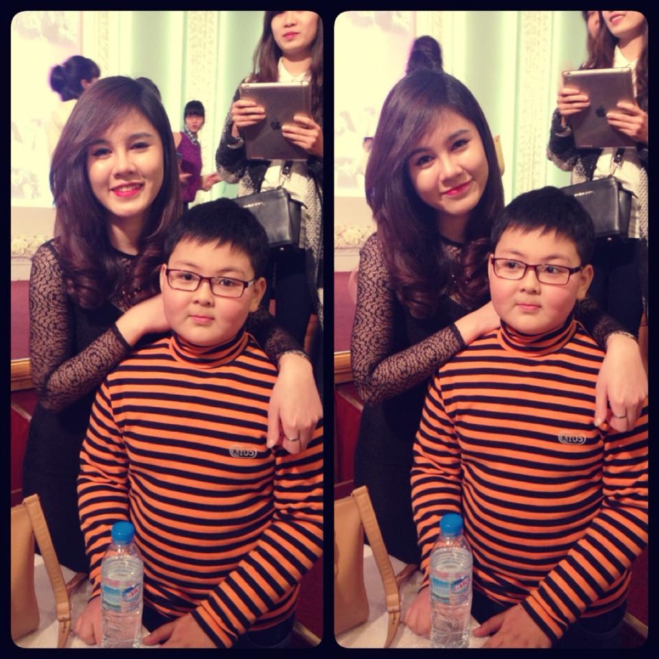 Thạch Thu Huyền và Thu Hoài rất vui trước tình cảm đặc biệt của fan nhí. Cả hai vui vẻ chụp ảnh kỷ niệm cùng cô bé.