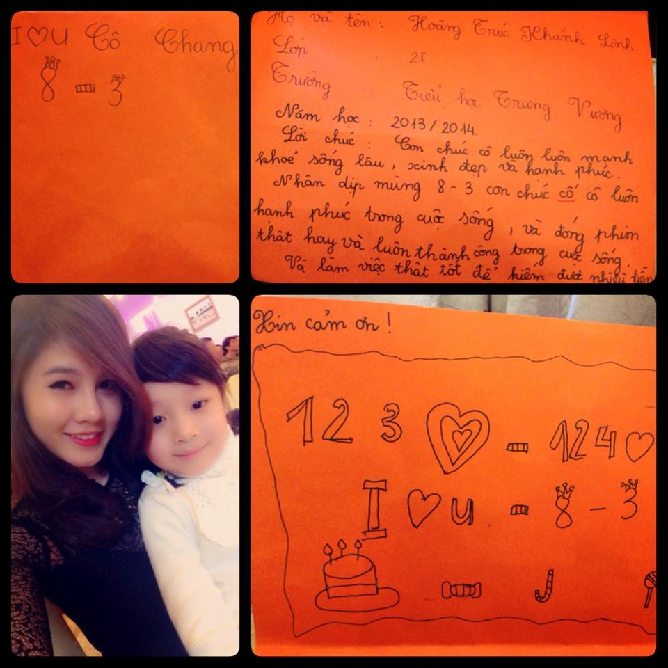 Cô nàng còn vô cùng thích thú khi khoe một tấm thiệp "handmade" của một fan nhí nhỏ tuổi.