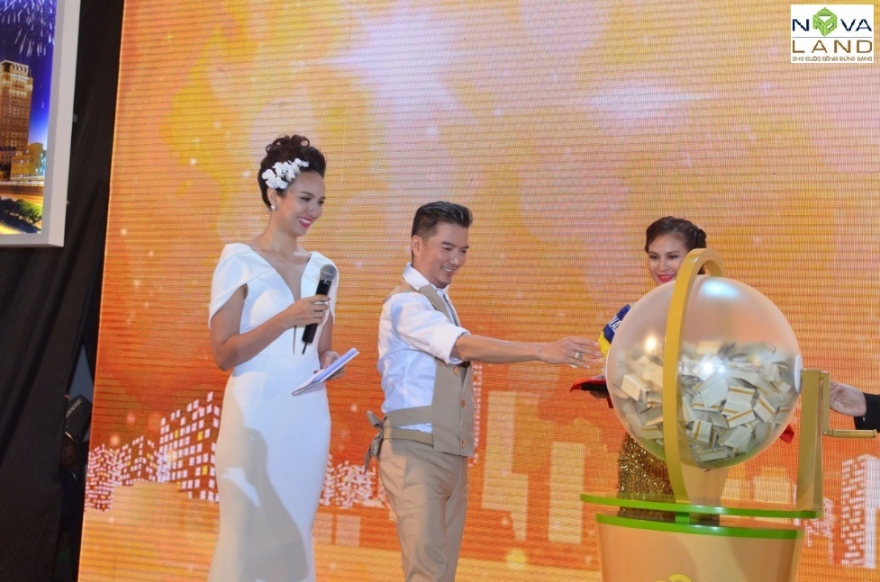 | Nam ca sĩ còn nhiệt tình tham gia vào màn bốc thăm trúng thưởng của chương trình. Đã có 2 vị khách may mắn nhất sở hữu phiếu mua sản phẩm Office-tel của Novaland trị giá 800 triệu đồng/phiếu và hơn 33 người tham gia nhận phiếu quà tặng mua sản phẩm trị giá 500 triệu đồng và 100 triệu đồng, cùng viên kim cương 4,5 ly. |