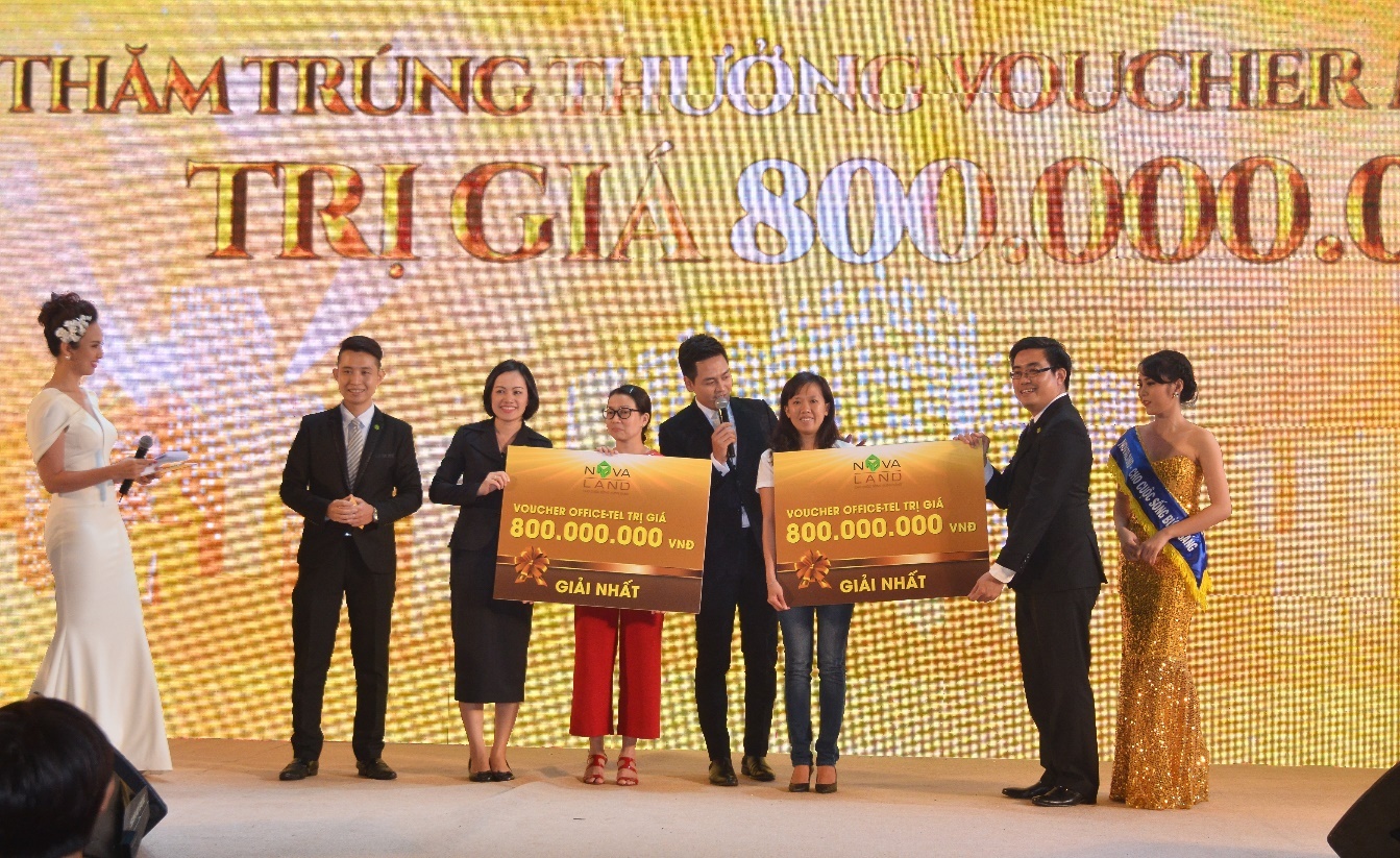 | Chị Ngô Thị Quỳnh Hoa - một trong hai khách hàng nhận quà trị giá 800 triệu từ sự kiện “Novaland - 23 năm cho cuộc sống bừng sáng” chia sẻ: “Thật bất ngờ và may mắn nhận giải thưởng, vì hôm nay có rất đông khách tham dự. Trúng được giải office-tel này, tôi chắc chắn sẽ bắt tay vào đầu tư ngay”. |