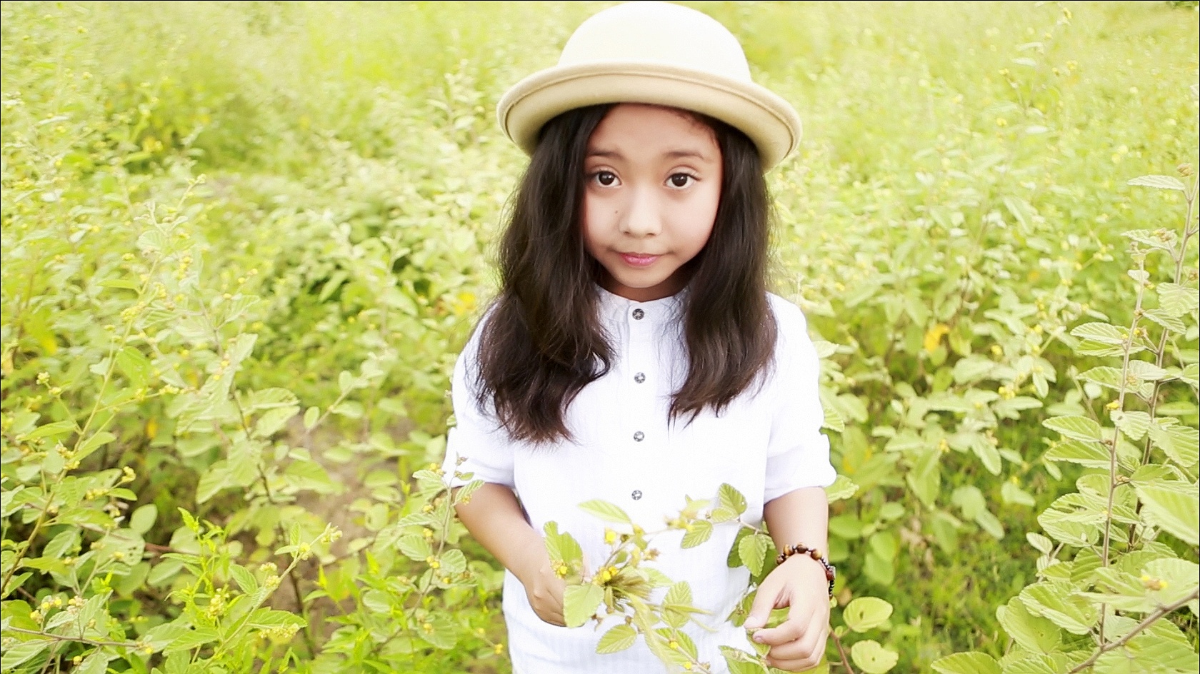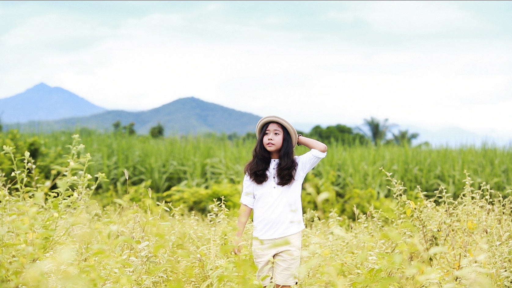 | Khác với vẻ nhẹ nhàng trong MV trước, Hồng Nhung trong Lời con hứa trông nhí nhảnh và dễ thương hơn. |