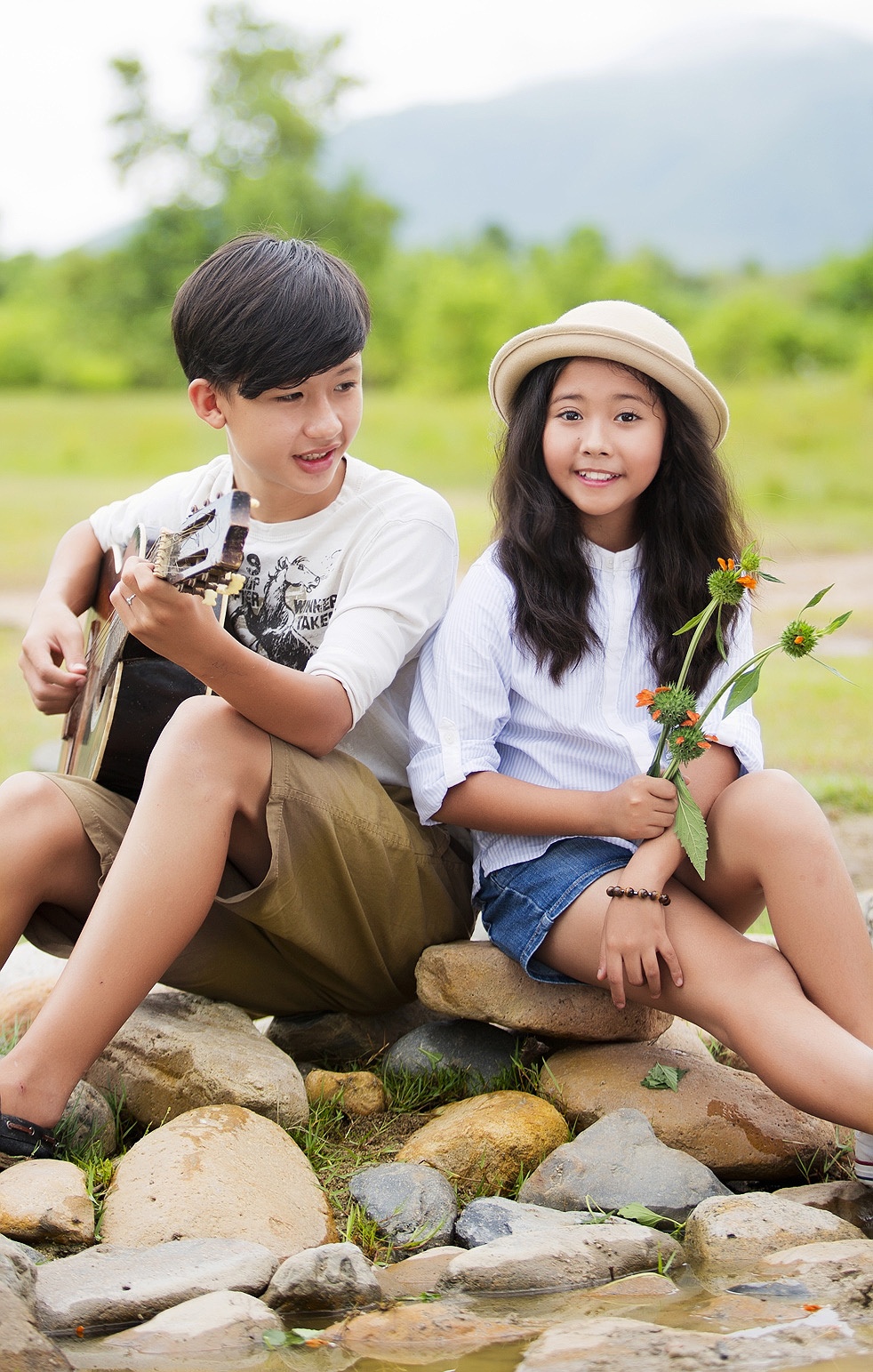 | Đặc biệt, MV còn có sự góp mặt của anh trai Hồng Nhung. Điều này giúp cô bé thêm tự tin trước ống kính. Người quay MV cho bé chính là Lê Thiện Viễn - một nhiếp ảnh gia nổi tiếng trong showbiz Việt cũng là chú của Hồng Nhung. |
