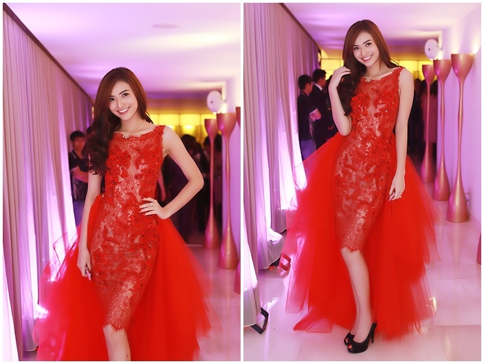 Trang phục đẹp nhưng không thực sự phù hợp với dáng người nhỏ nhắn, điểm nhấn cổ áo sâu không giúp cô phát huy vẻ đẹp gợi cảm..