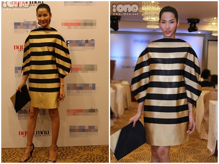 Đóng vai trò ca sĩ khuấy động một sự kiện diễn ra tại TP.HCM, người đẹp gợi cảm Hoàng Thùy Linh chọn trang phục khá nổi bật, phù hợp với vũ điệu sôi động của bài hát. Tuy nhiên, chiếc váy có nhiều chi tiết đính hạt rườm rà, tua rua không cần thiết.
