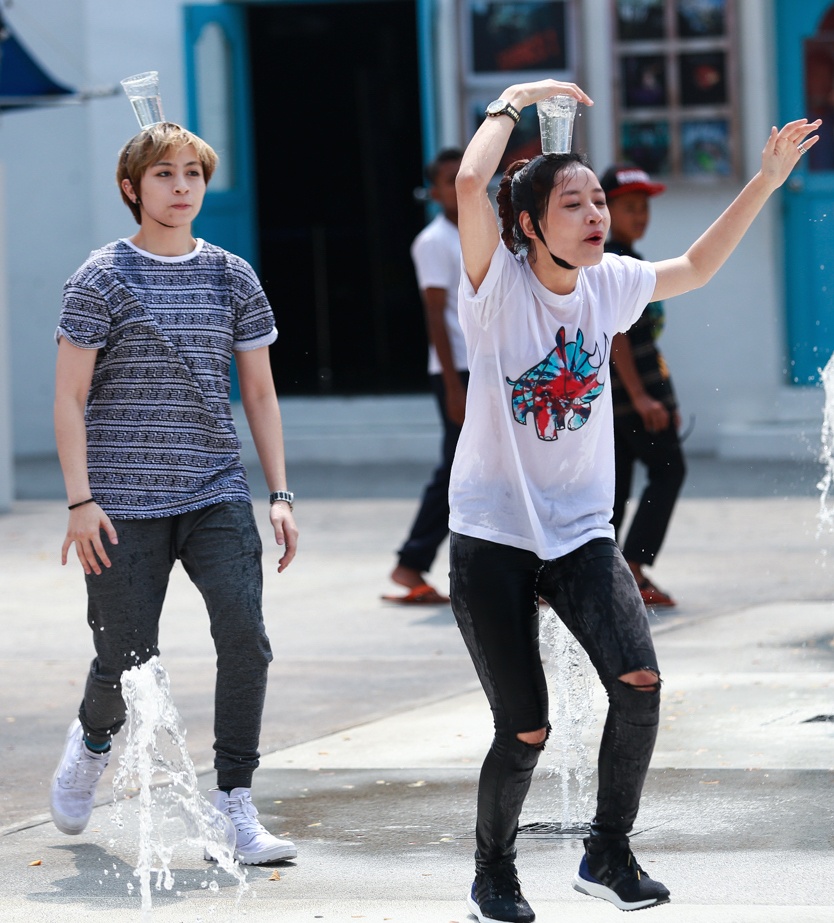 Ngày hôm sau, cả nhóm có mặt tại công viên Satorini và cùng nhau vượt qua thử thách mang tên Đổ nước cho đầy. Từng thành viên sẽ đội lên đầu một chiếc ly nhựa, đi hứng và đổ nước vào xô theo đúng quy định về luật chơi. Thử thách này không được sử dụng tay để thực hiện và thời gian tối đa là 20 phút.