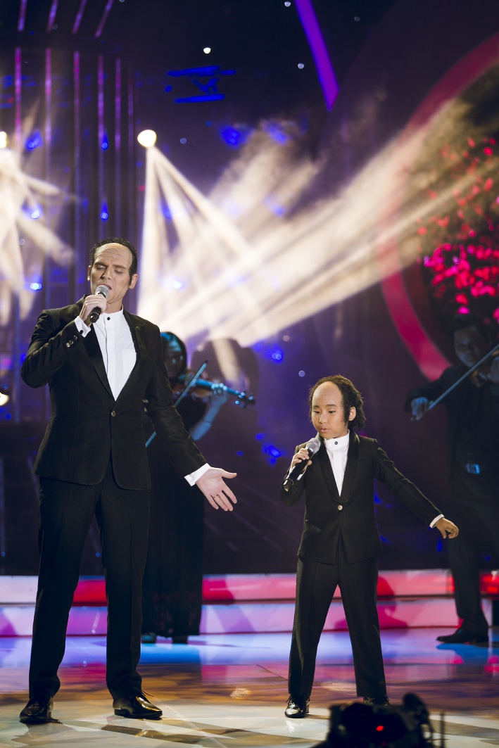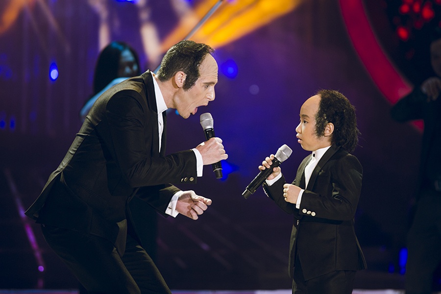 Phân trình diễn vui nhộn của cả hai khiến giám khảo Hoài Linh cười nắc nẻ: “Lúc con cất giọng hát chú rất bất ngờ vì giọng con hay quá. Và anh hiểu được nỗi khổ của Minh Thuận khi tập tiết mục này”.