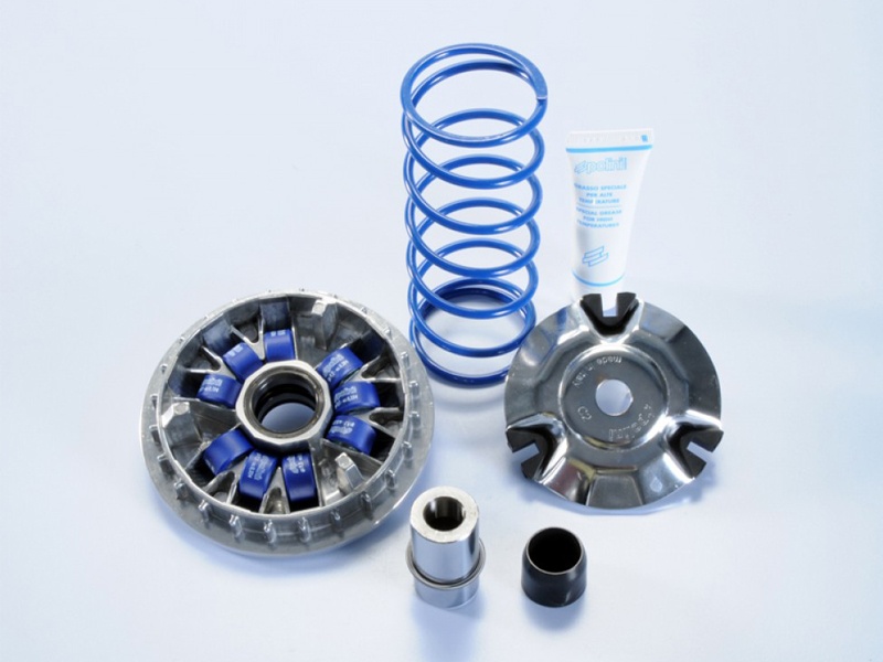 Tiếp tục tăng vận tốc động cơ, lực li tâm lớn làm các con lăn trên puli sơ cấp văng ra xa hơn, ép má di động của puli sơ cấp hẹp lại, dây curoa bị đẩy ra xa tâm hơn, vì vậy bán kính puli sơ cấp tăng lên. Vì độ dài dây curoa không đổi nên má di động của puli thứ cấp văng ra, bán kính puli thứ cấp nhỏ dần. Lúc này tỷ số truyền sẽ giảm dần và làm tăng tốc độ xe.
