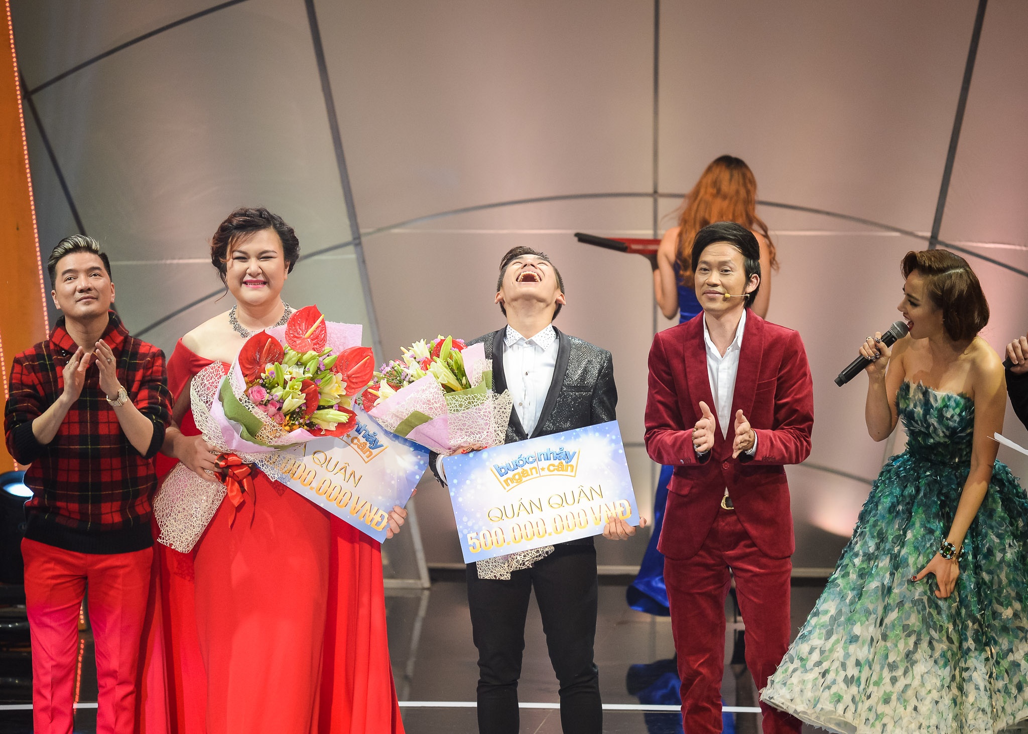 Hoài Linh và Đàm Vĩnh Hưng trao giải cho quán quân. |