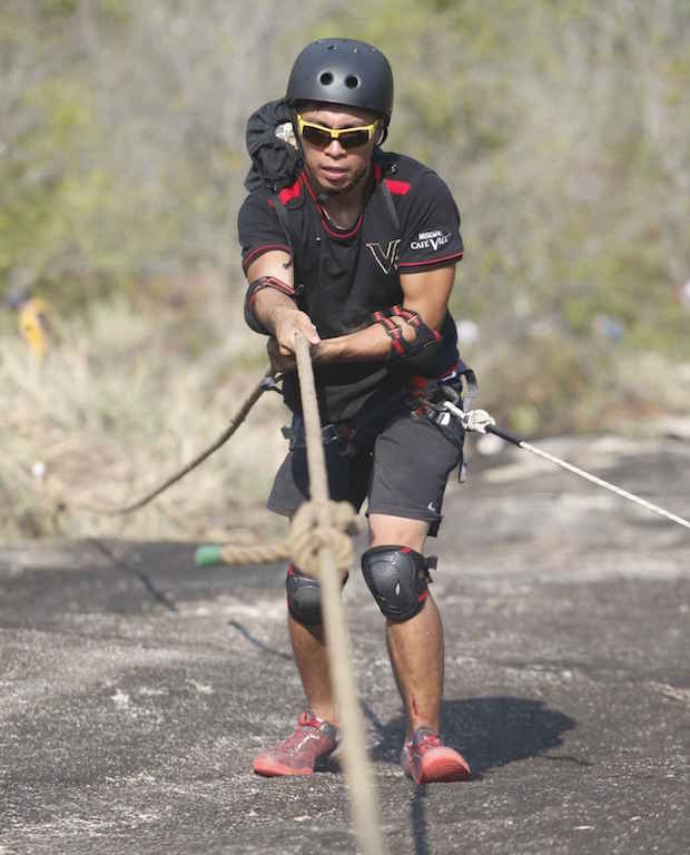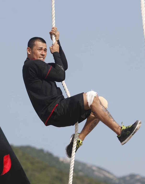 Cùng trụ lại ở dây thứ 3 như Tùng Min là Quang Huân và Hữu Vi. Nhân Phạm và Minh Ngọc là 2 cái tên gặp nhiều khó khăn nhất. Nếu Nhân Phạm (ảnh) khép lại thử thách đầu bằng vị trí thứ 6 khi đu người đến được sợi dây thứ 2 thì Minh Ngọc khiêm tốn hơn ở vị trí cuối bảng vì chỉ hoàn thành được phần đu người trên sợi dây đầu tiên. Bứt phá mạnh mẽ nhất trong chặng này là Jay Võ và Duy Phương. Sau thành công trong nhiệm vụ sở trường, “Hot boy phòng gym” vươn lên vị trí đầu bảng đầy thuyết phục.