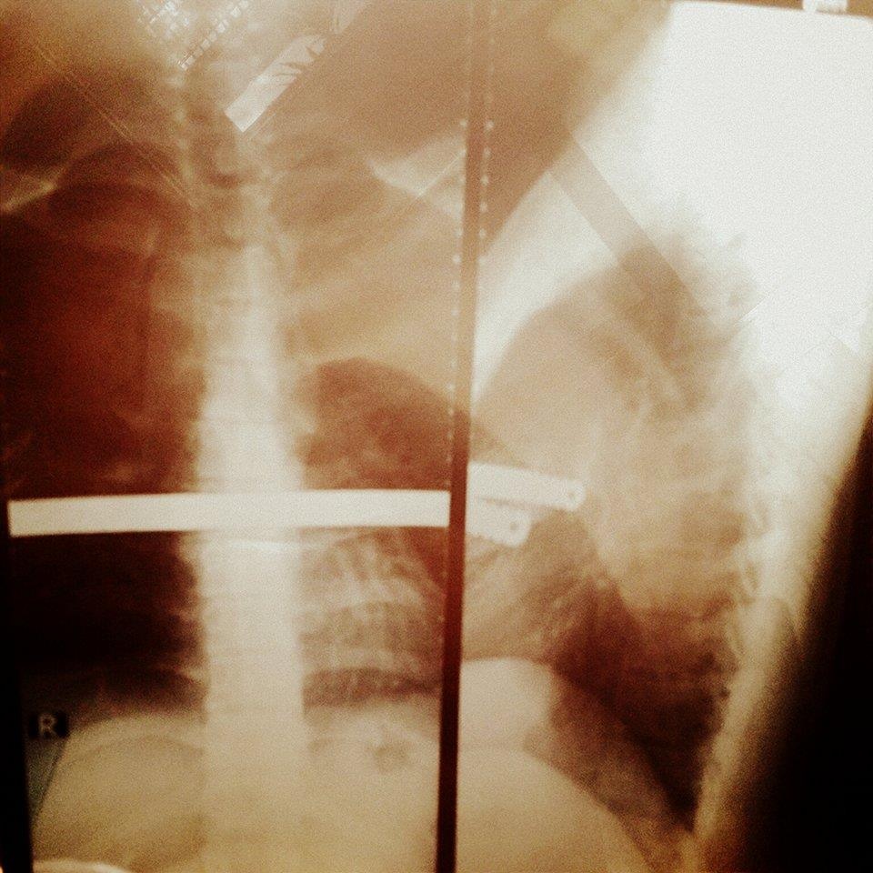 | Thanh sắt dài 30,5 cm trong lồng ngực Khánh suốt 3 năm qua. |