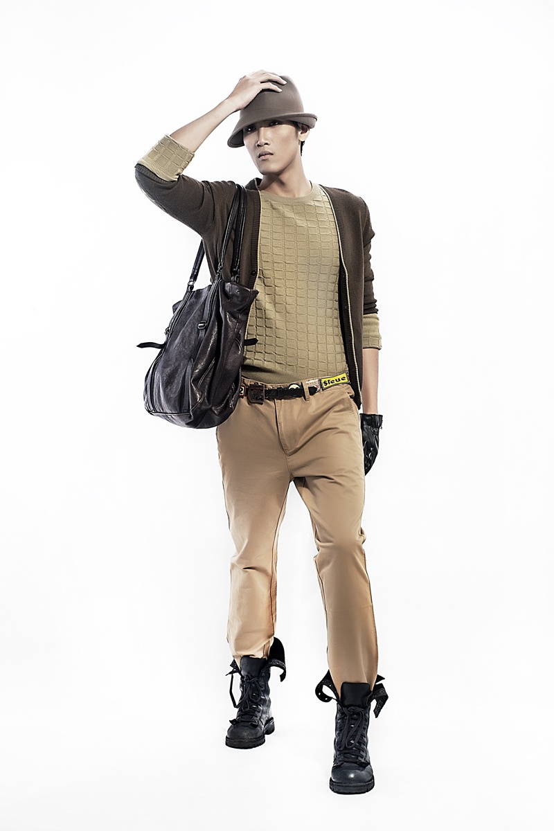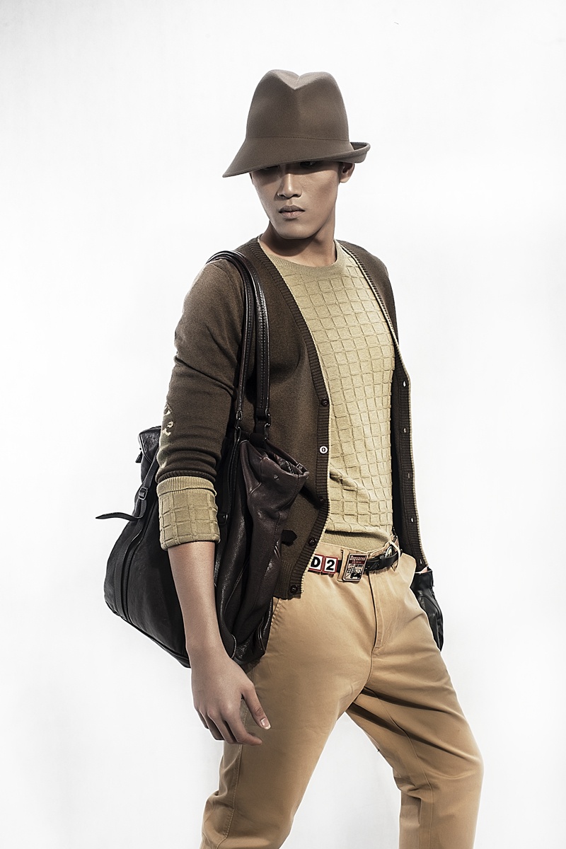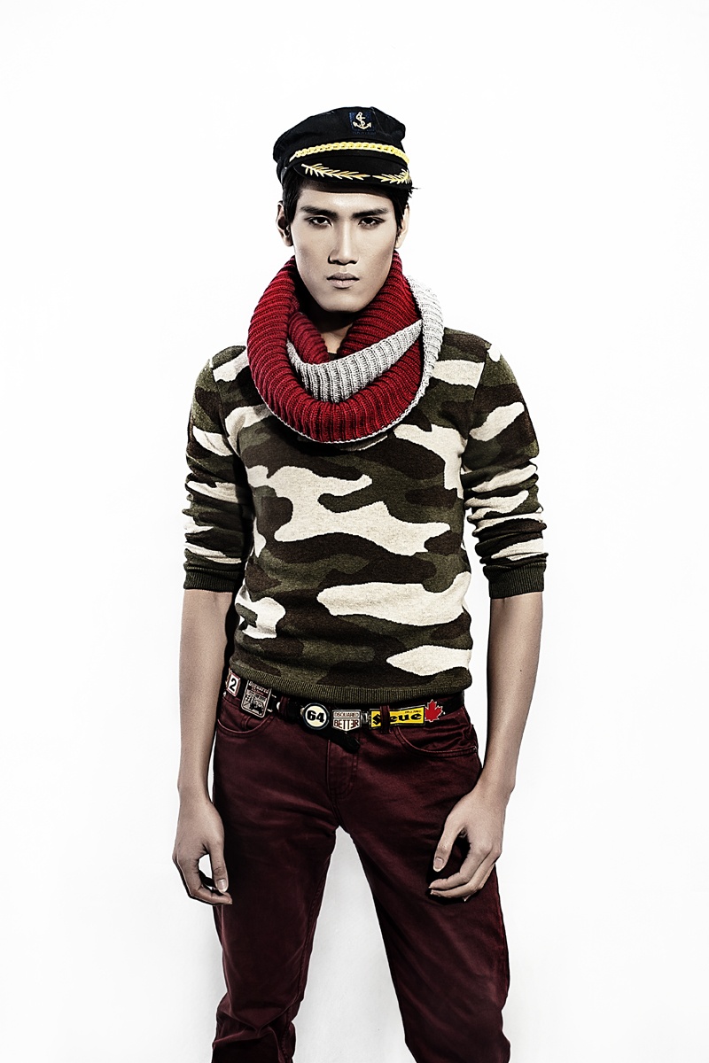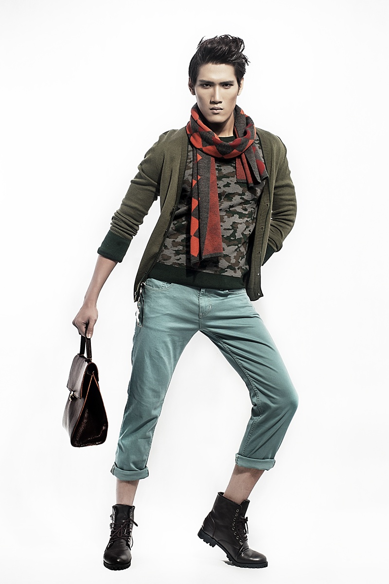 Nam người mẫu trưởng thành từ cuộc thi ''Vietnam's Next top Model'' mới lạ trong trang phục phong cách quân đội khỏe khoắn và nam tính.