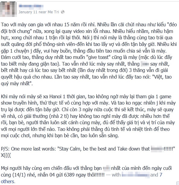 Một lý do khác góp phần cho chiến thắng của Sơn Việt chính là bạn bè - một từ luôn được chàng giám đốc trẻ người Hà Nội nhắc tới với sự trân trọng và đầy tình cảm. Coi trọng, hết lòng vì bạn để thứ Sơn Việt nhận lại là sự không hề cô đơn dù phải sống căn nhà biệt lập trong hành trình 65 ngày của Người giấu mặt.