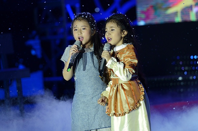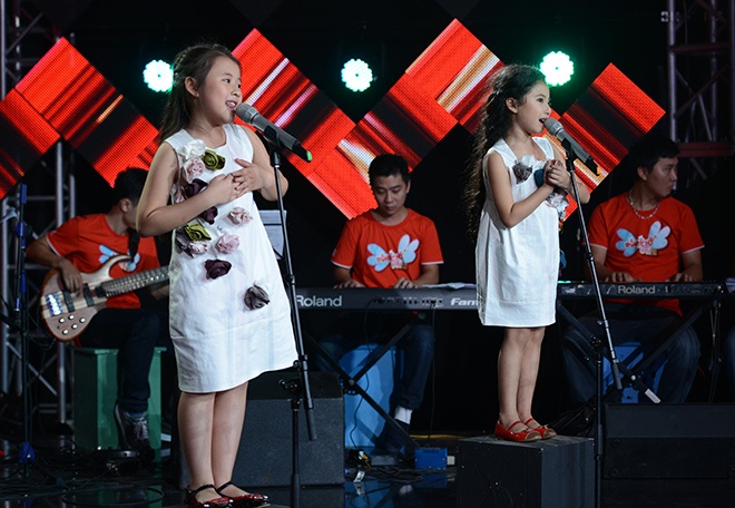 | Cả ba giám khảo đều khen ngợi hai cô nhóc xinh xắn như những đóa hồng nhỏ. |