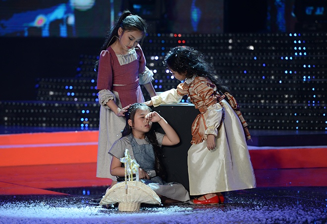 | Ở phần nhạc kịch, Quỳnh Dao - Khánh Ngọc hóa thân vào câu chuyện của cô bé bán diêm của trích đoạn Em bé bán diêm... |