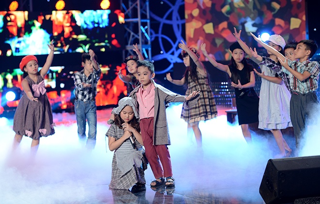 | ... và cả dàn diễn viên nhí múa phụ họa thể hiện một trích đoạn của vở nhạc kịch Những người khốn khổ. |