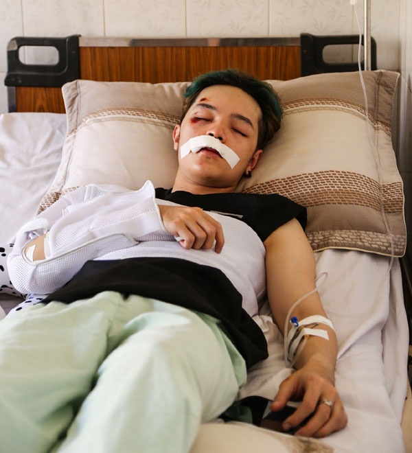 Tuy nhiên, bệnh viện quận không thể tiến hành băng bó cũng như tiểu phẫu ngay lập tức. Đến 4h chiều cùng ngày, chị gái và mẹ của hot boy đã làm thủ tục chuyển anh qua bệnh viện chấn thương chỉnh hình trên đường Trần Hưng Đạo để tiếp tục điều trị.
