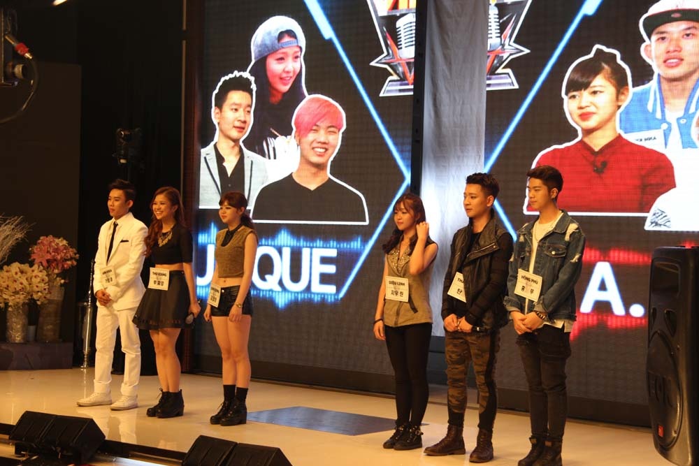 Nhóm T.I.O (trái) được đánh giá là mạnh nhất đã thể hiện khả năng hát và nhảy ăn ý khiến cho đối thủ là nhóm Thập cẩm (phải) phần nào mất đi sự tự tin của mình.