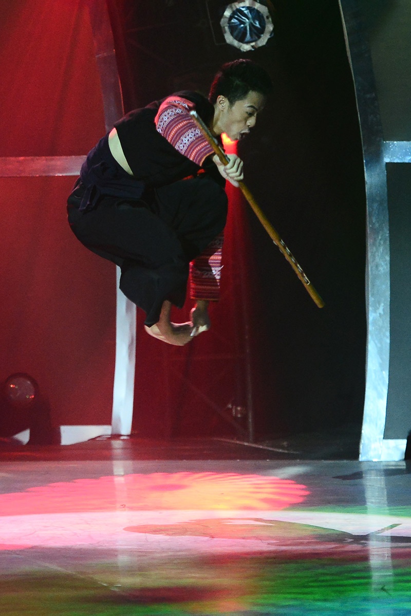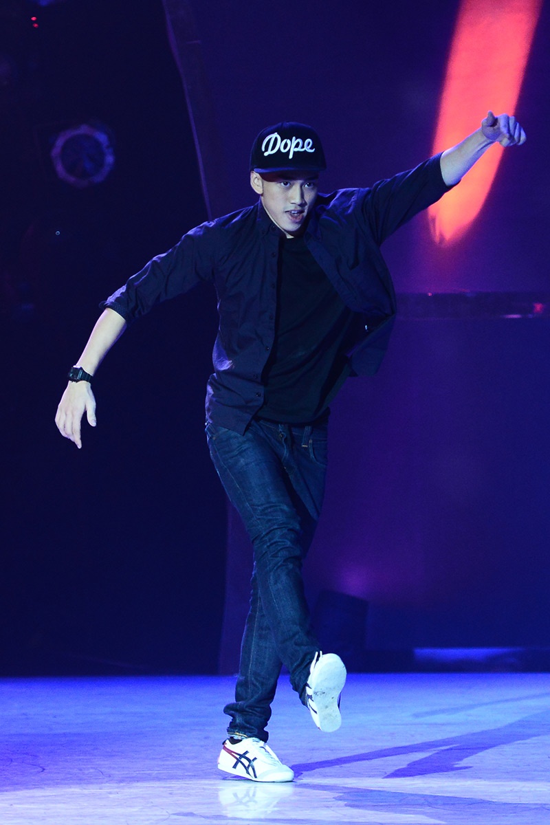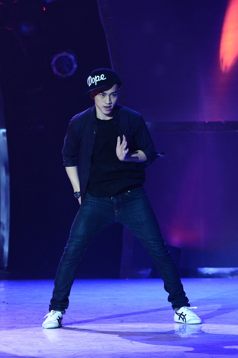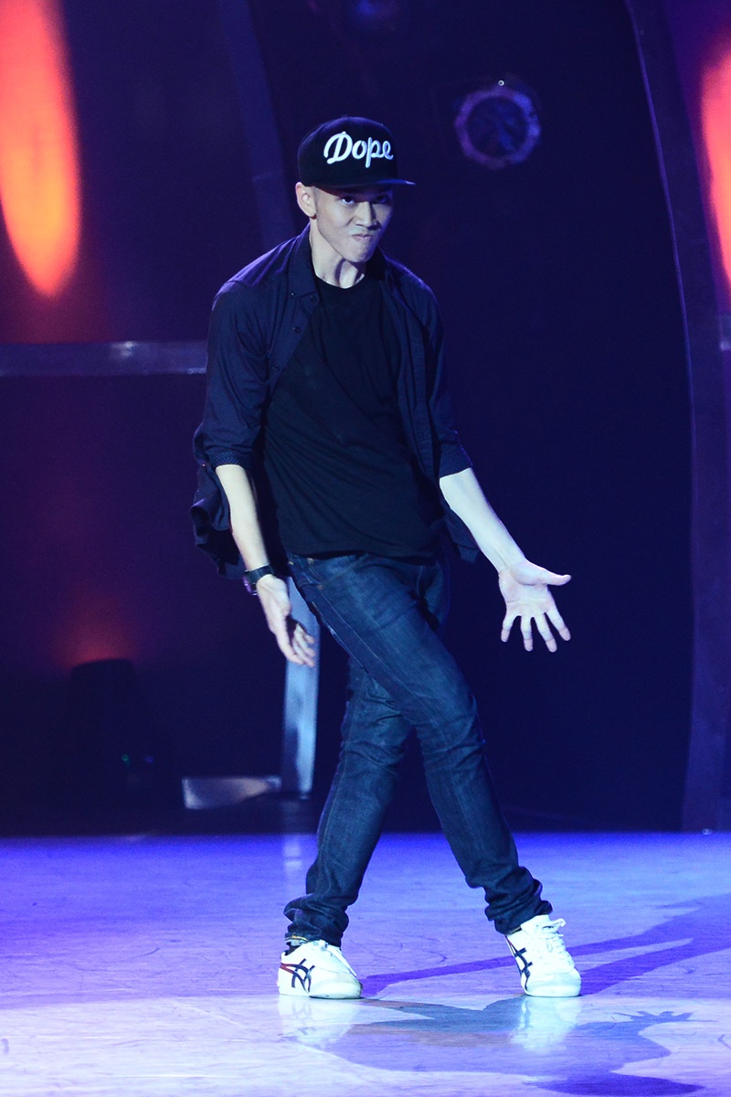 Ngọc Anh cố gắng tận dụng hết những động tác đầy kỹ thuật để chinh phục ban giám khảo. Với những cú chống tay, xoạc chân xoay người liên tục khiến khán giả không khỏi thán phục. MC Trấn Thành phải thốt lên rằng: “Đây đúng là kỹ thuật rợn người”. |