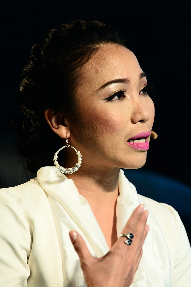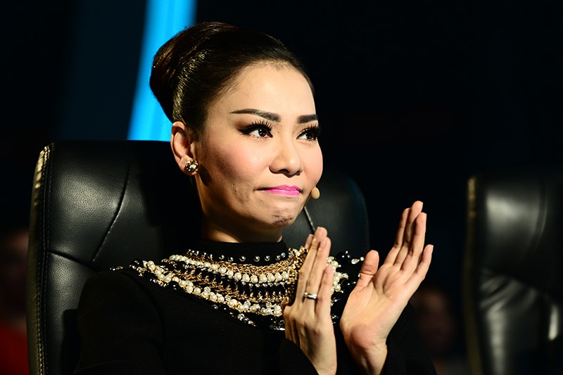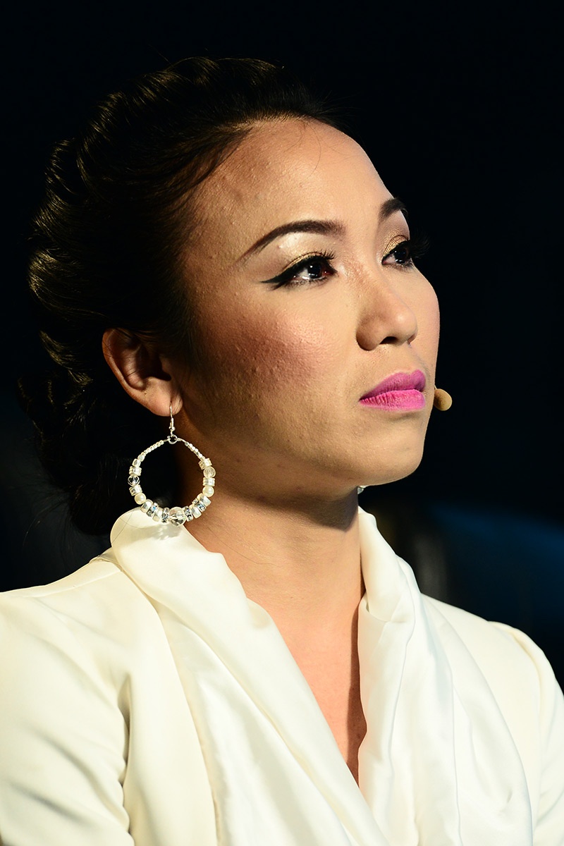 Tuyết Minh khá trăn trở khi phê bình Ngọc Thịnh. Chị là giám khảo nhiệt huyết và dành cho thí sinh sự chân thành của một đàn chị đi trước. |