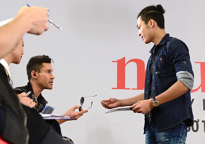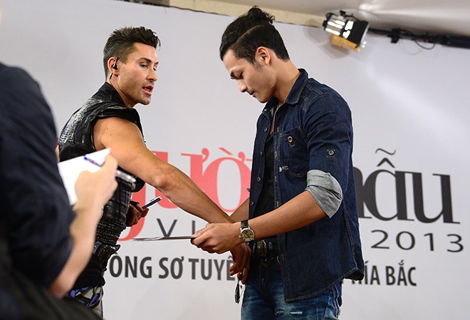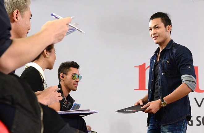 | Tuấn Việt nổi bật ngay từ khi có mặt tại buổi đăng ký dự thi bởi phong cách thời trang cá tính. Anh chàng có chỏm tóc buộc cao và gương mặt manly rất ấn tượng. |