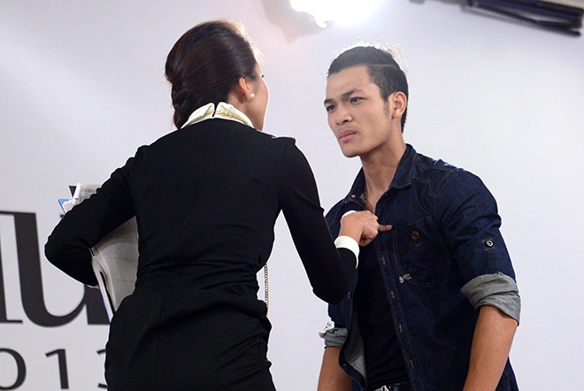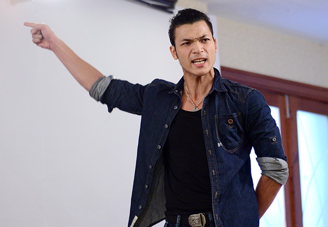 | Tuy nhiên, ngay từ cách nói chuyện và ánh nhìn, Nam Trung đã bóc mẽ là Việt "quá diễn" dù bên trong ẩn chứa một con người nhạy cảm và hay suy nghĩ. Đang học khoa Diễn viên của trường ĐH Sân khấu điện ảnh Hà Nội, Tuấn Việt chọn cách diễn kịch để khoe tài và cũng là chứng minh với bộ tứ quyền lực rằng trong bất cứ cuộc thi nào cũng cần chuẩn bị cẩn thận, kỹ lưỡng. |
