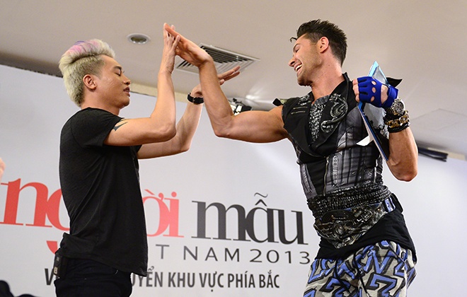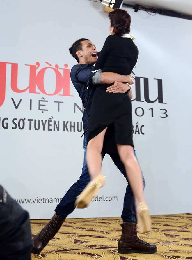 | Kết thúc thử thách, Thanh Hằng đã xoa má xin lỗi Tuấn Việt vì cái tát đường đột vừa rồi. Tuy nhiên, Adam lại không đồng ý với điều đó. Giám khảo người Úc cho rằng khi mình cầm kính thì hot boy tỏ ra không hài lòng, vậy tại sao anh chàng bế Thanh Hằng mà không hỏi trước lời nào lại được chấp nhận? |