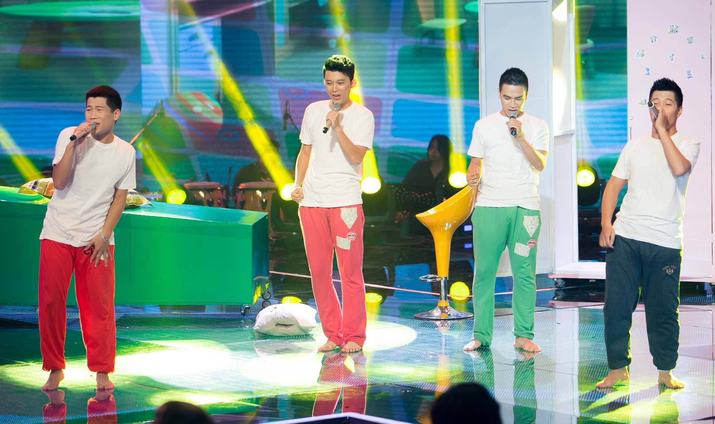 | Nhóm F Band vẫn trung thành với phong cách vui nhộn, hài hước quen thuộc cùng bản mash up Tuổi mộng mơ - Cô bé dỗi hờn - Mắt nai cha cha cha. Nhạc sĩ Dương Khắc Linh không ngại bày tỏ: "F Band là số 1. Các em luôn biết cách kết hợp các ca khúc lại với nhau một cách thông minh và ăn khớp". |