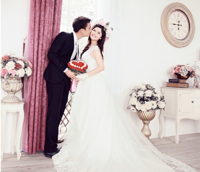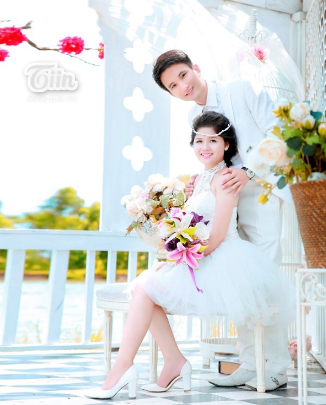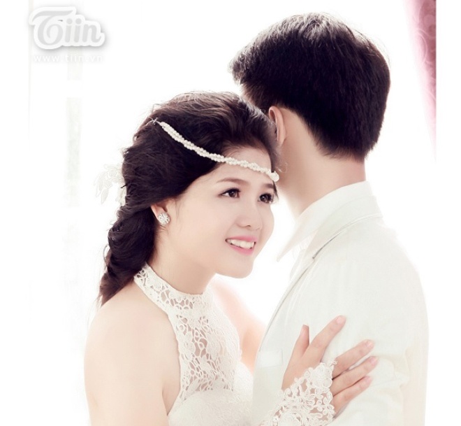 | Hồng Liên hạnh phúc bên người yêu trong bộ ảnh cưới vừa thực hiện. |
