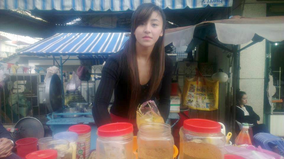 | Bảo Chi trong cửa hàng bánh tráng trộn. Ảnh B.N. |