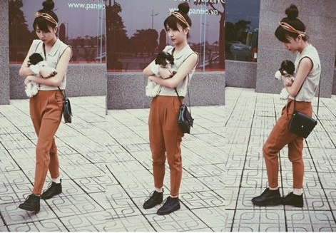 Ngày 30/4, hot girl Quỳnh Anh Shyn đi dạo phố với phong cách thời trang năng động. Người bạn đồng hành cùng cô là chú cún đáng yêu: "Cho Sườn đi chơi ngày nắng”. |