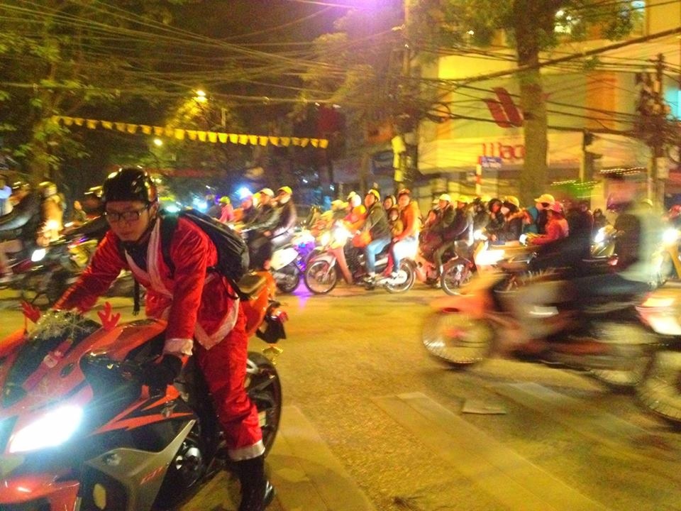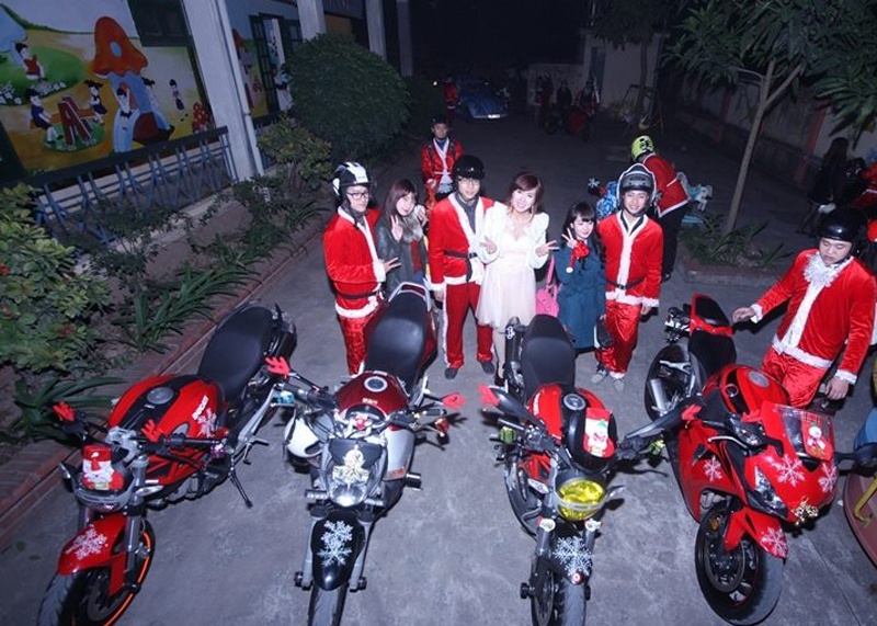 | Trước đó lúc 6h tối ngày 24/12, Mai Thỏ cùng nhóm bạn motor Hà Nội đã có mặt tại điểm tập kết Hồ Tây, chuẩn bị cho hành trình từ thiện ý nghĩa. |