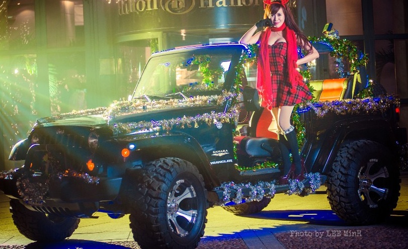 | 21h tối nay (24/12), đoàn xe của hot girl siêu vòng một đã khiến người đi đường chú ý. |